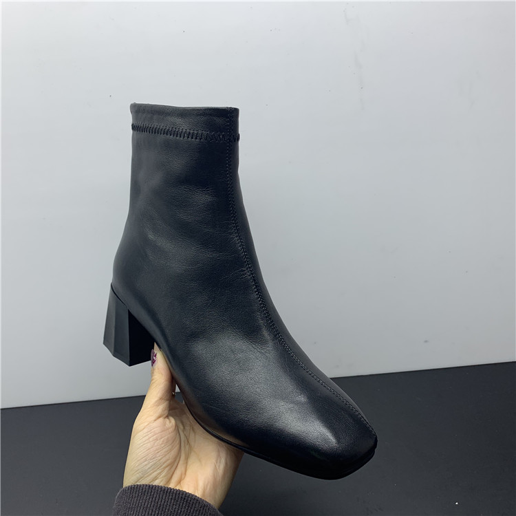 工厂清仓处理2019秋款真皮女鞋短筒欧美中粗跟拉链牛皮女短靴