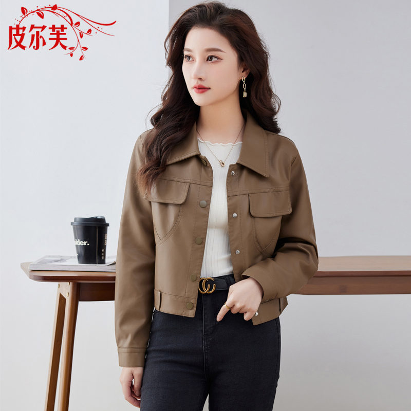 修身时尚潮流皮衣女2024春秋季新款韩版短款韩国pu皮夹克机车外套