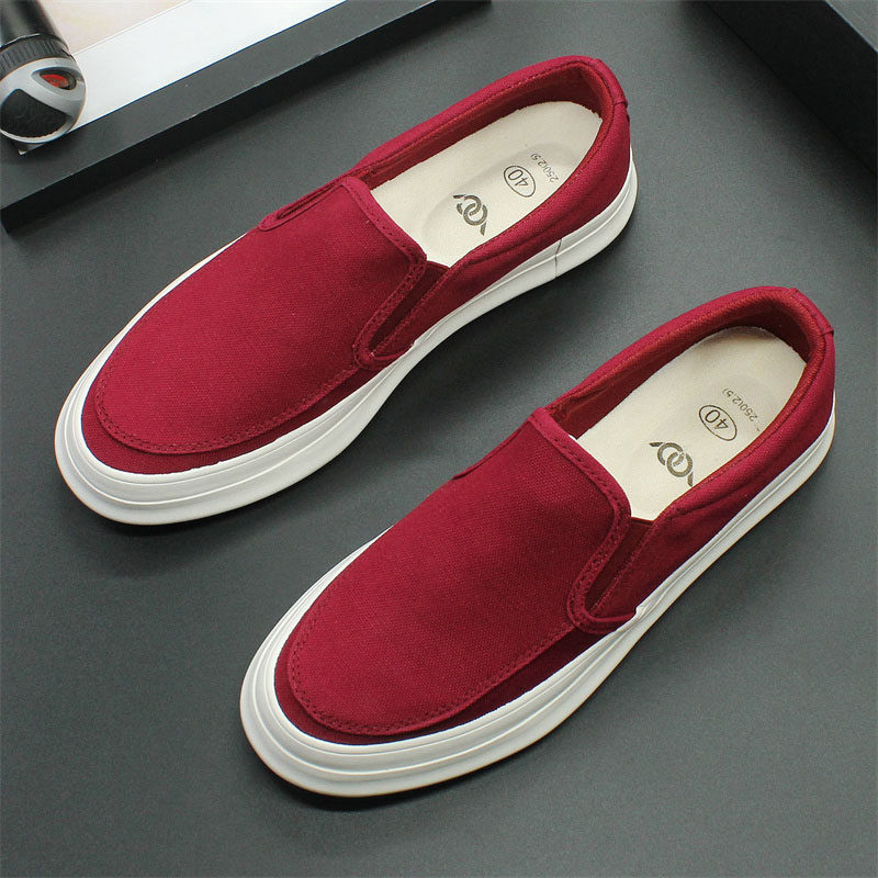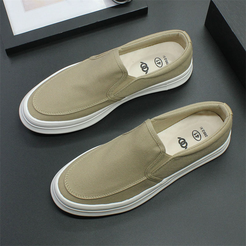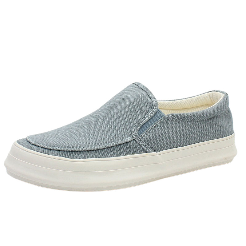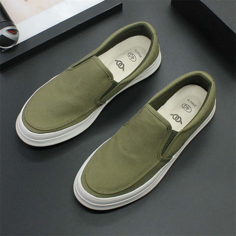 透气男鞋四季百搭厚底帆布鞋子一脚蹬懒人乐福鞋男士大码休闲板鞋