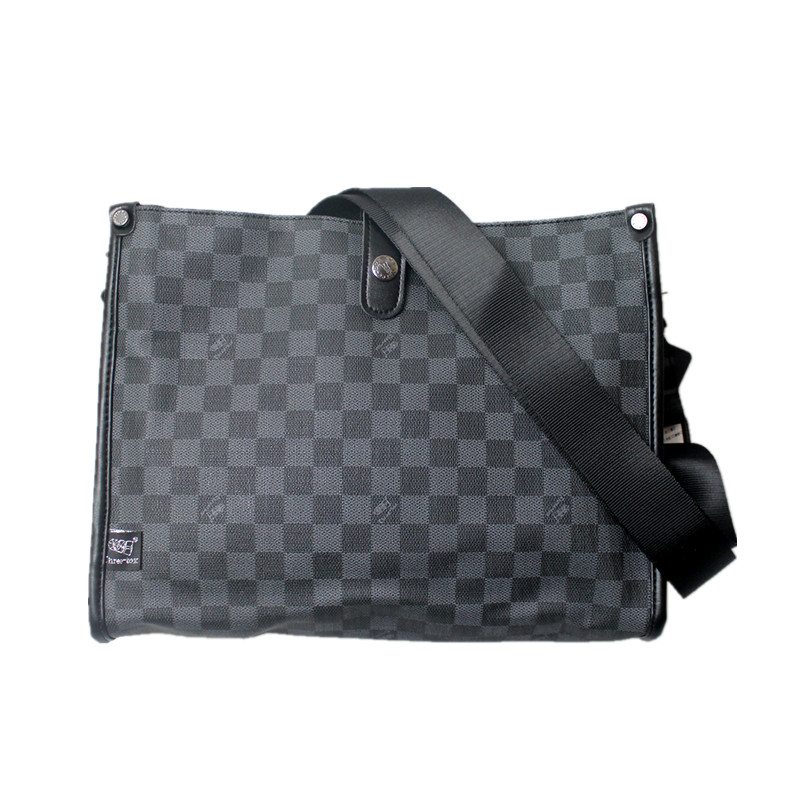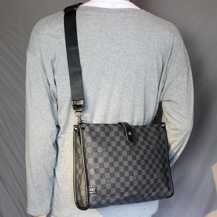 潮牌真皮质感格子男单肩包男包格纹ipad包斜跨包青年商务挎包背包