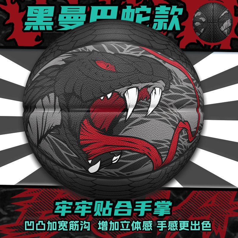 维动蛇年限定黑曼巴蛇篮球7号成人比赛训练儿童橡胶蓝球户外耐磨