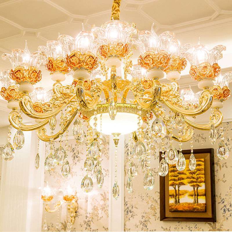 欧式水晶吊灯奢华大气客厅吊灯简欧餐厅灯锌合金别墅家用卧室灯具