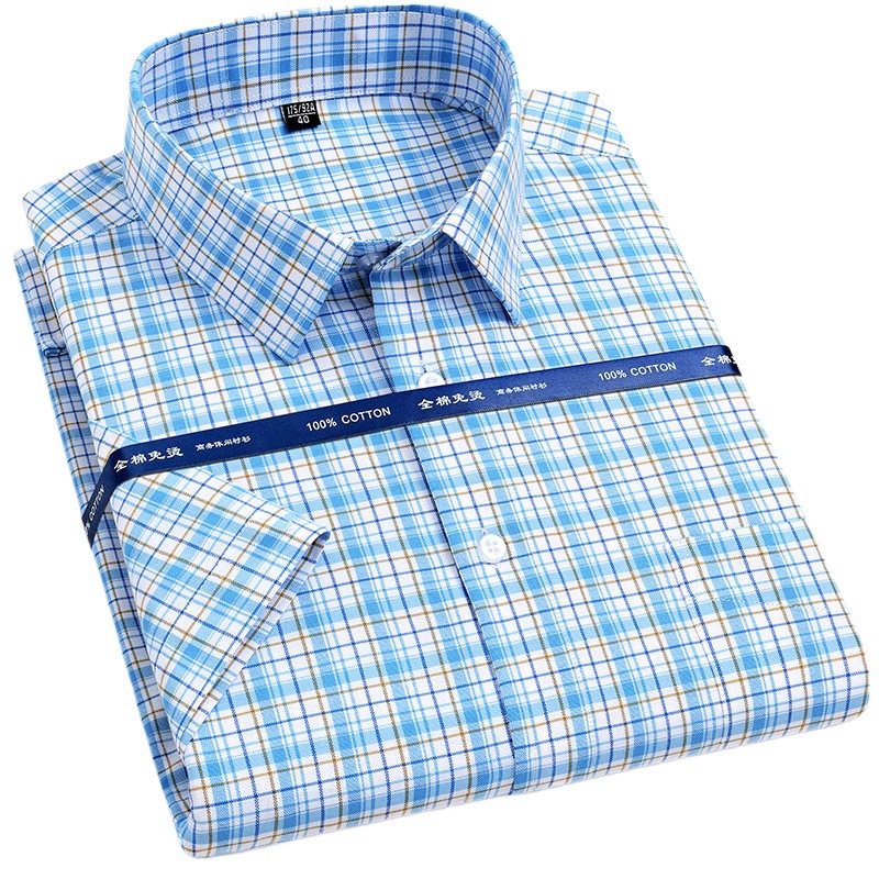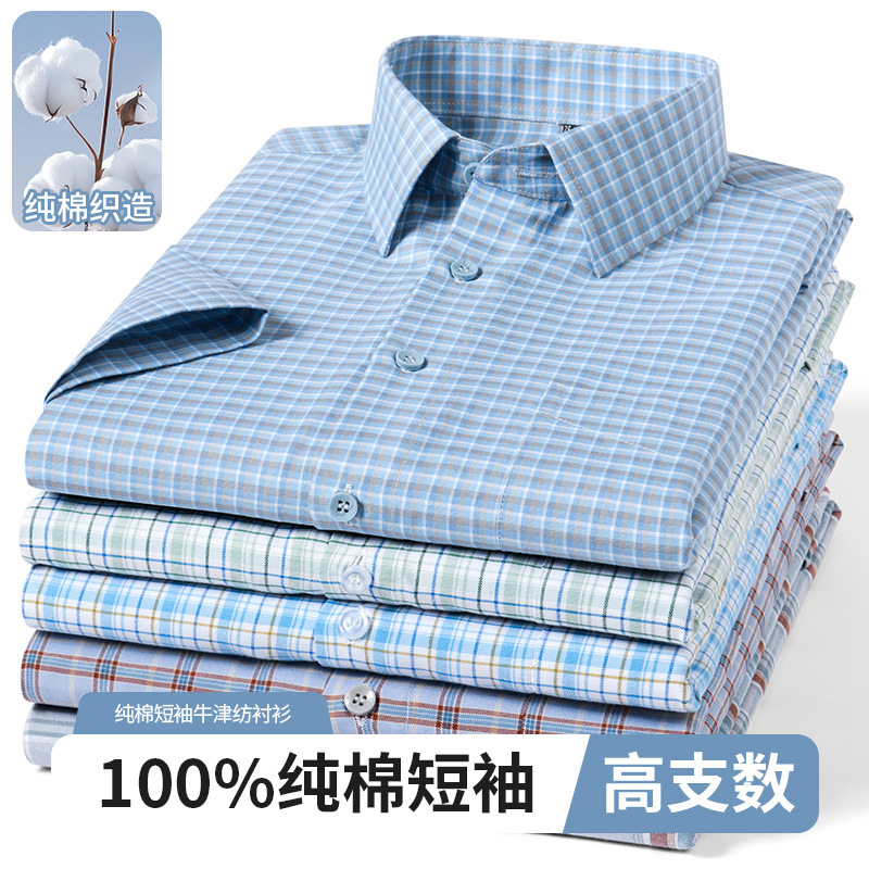 啄木鸟新款男短袖格子衬衫加大码纯棉牛津纺衬衣薄款半截袖宽松