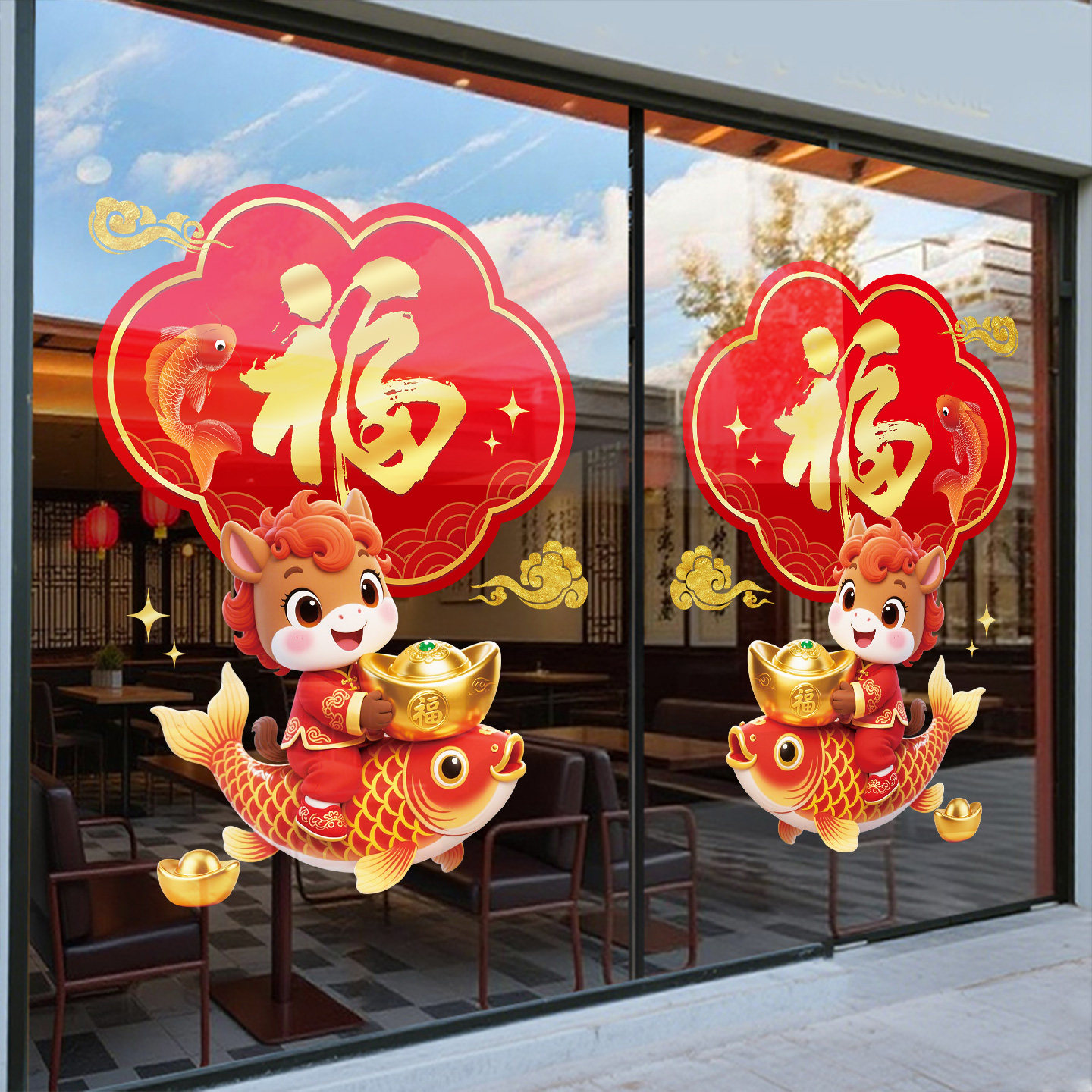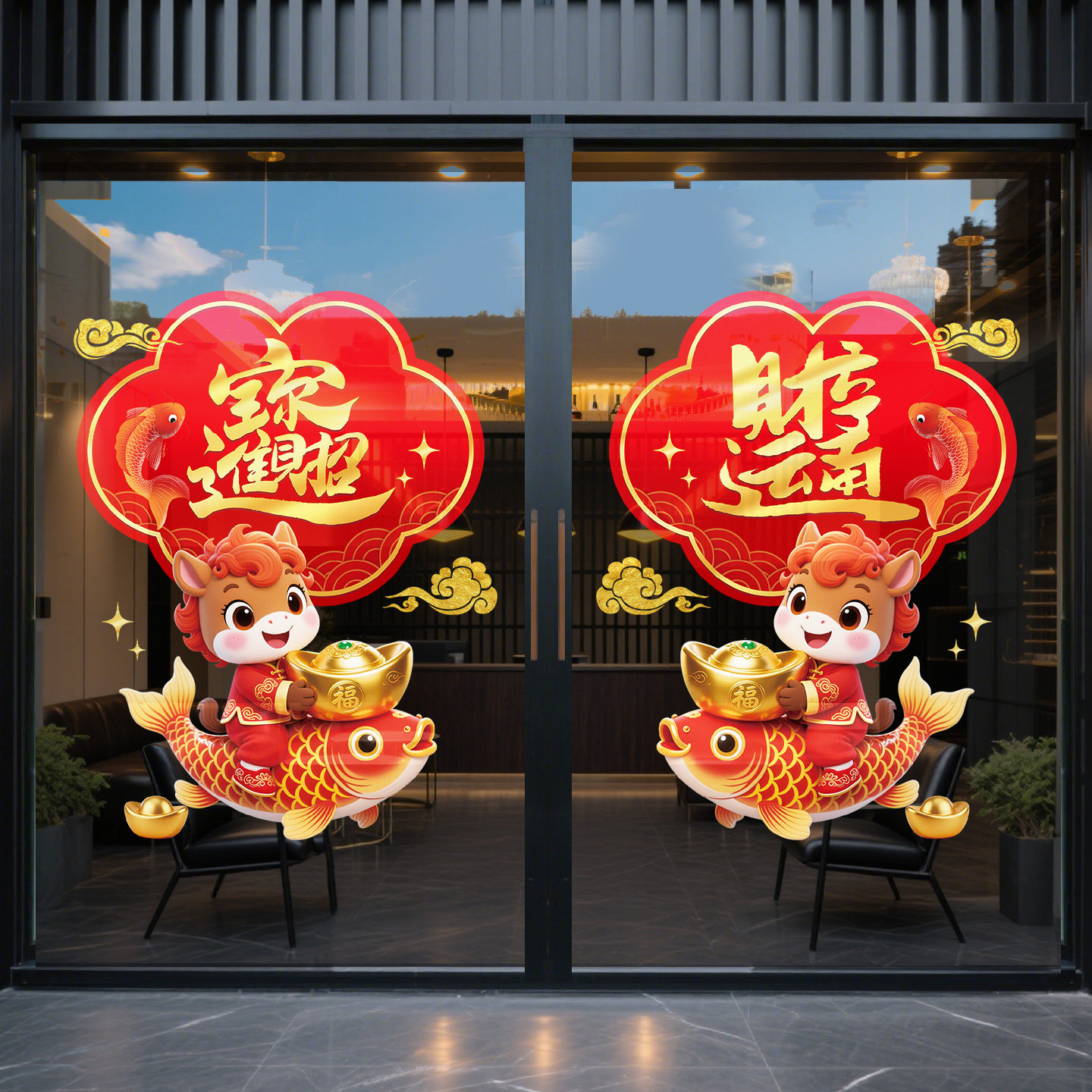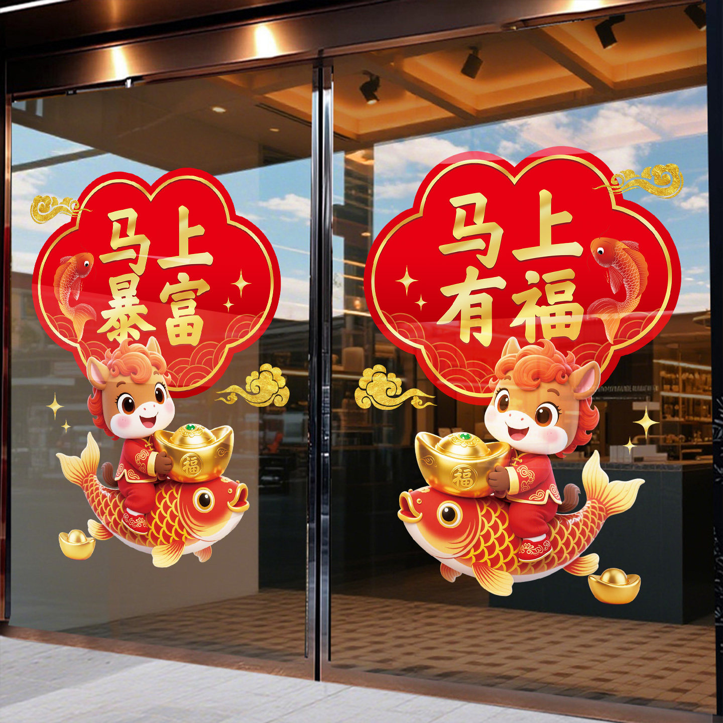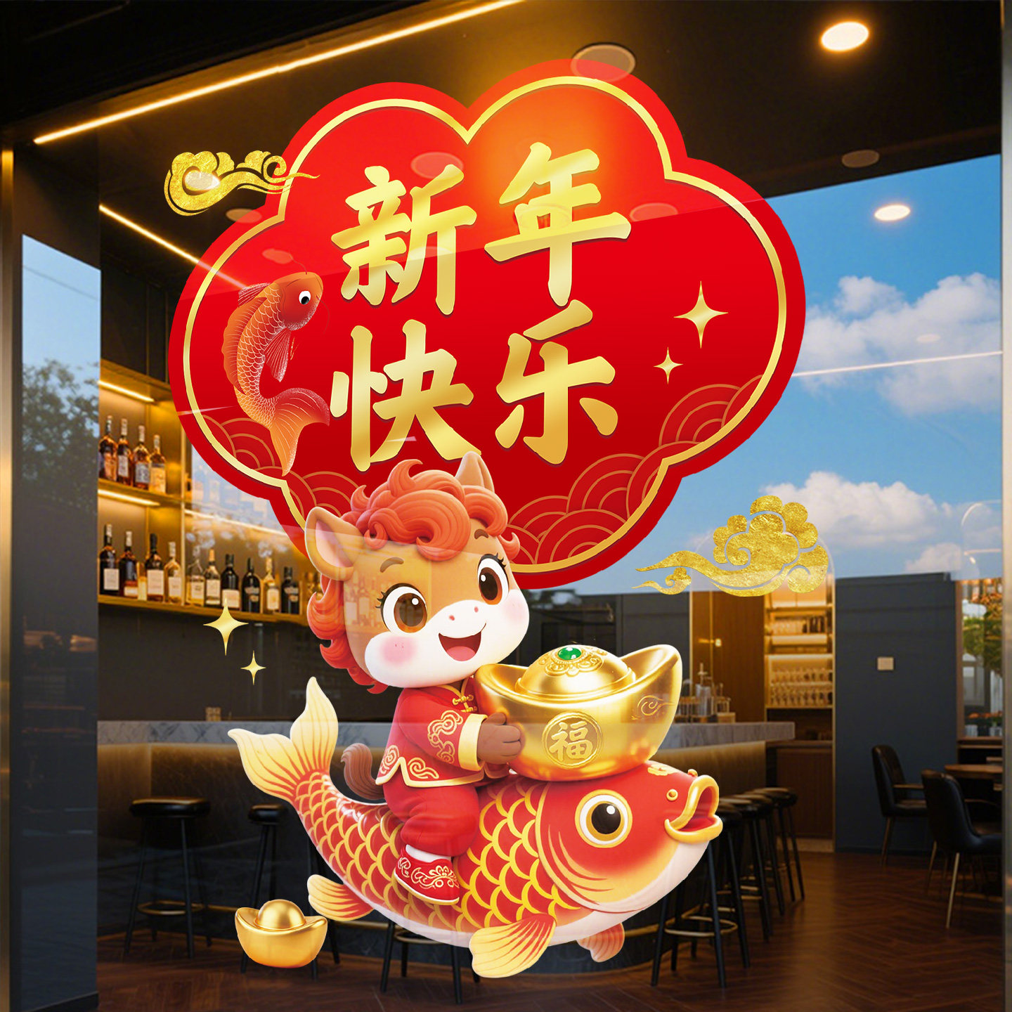 马年玻璃门贴纸2026新年装饰窗花商场公司过年氛围布置UV静电窗花