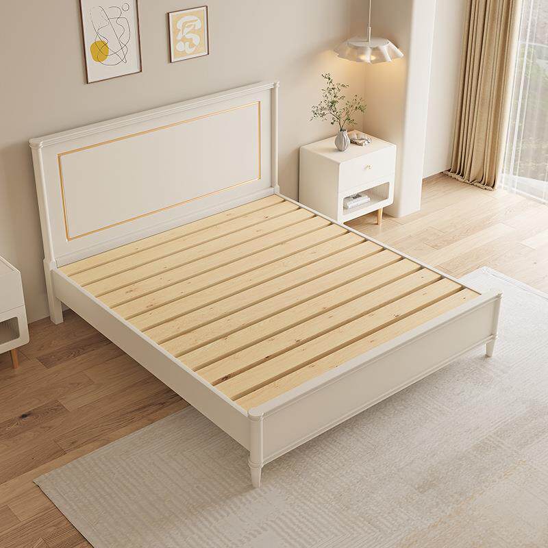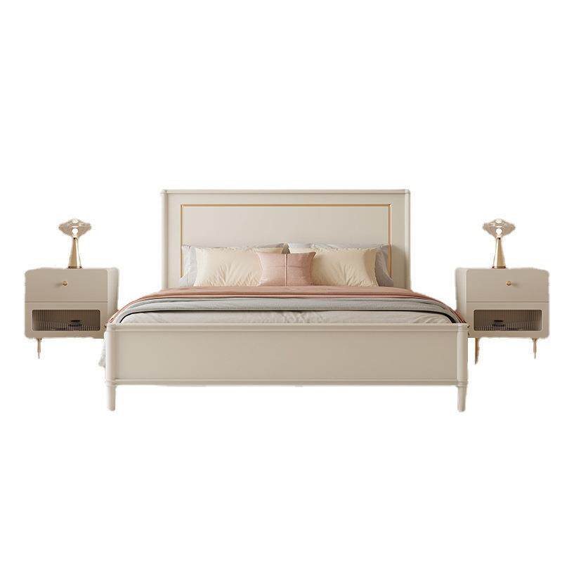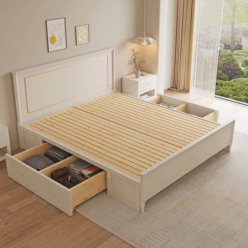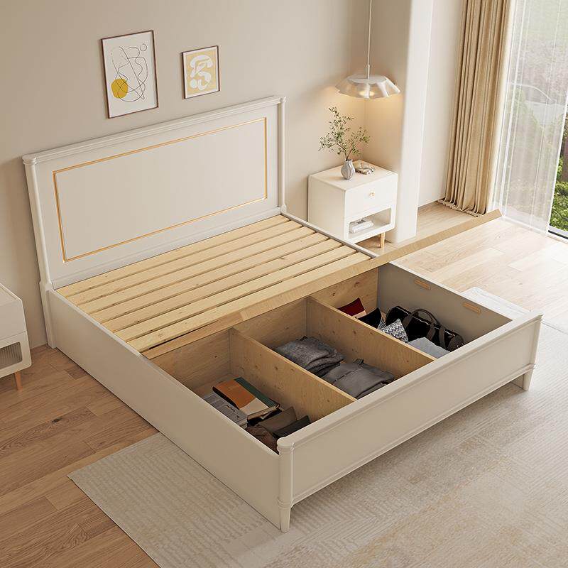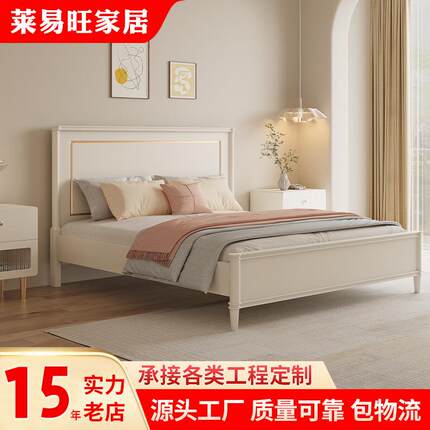 美式轻奢实木床现代简约奶油风白色1米8双人床主卧高箱储物床1.5m