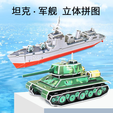 坦克军舰diy手工拼装插3D立体拼图航母模型静态仿真儿童男孩玩具