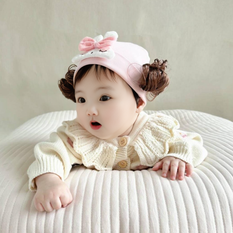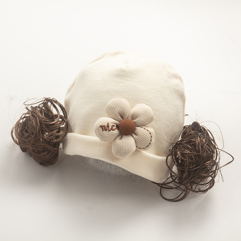 婴儿帽子秋款女宝宝花朵假发胎帽
