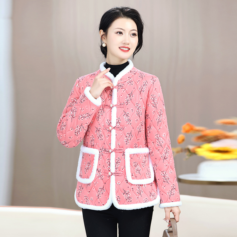 网红花棉衣时尚冬季妈妈装女装加绒棉服复古中年加厚保暖外套花袄