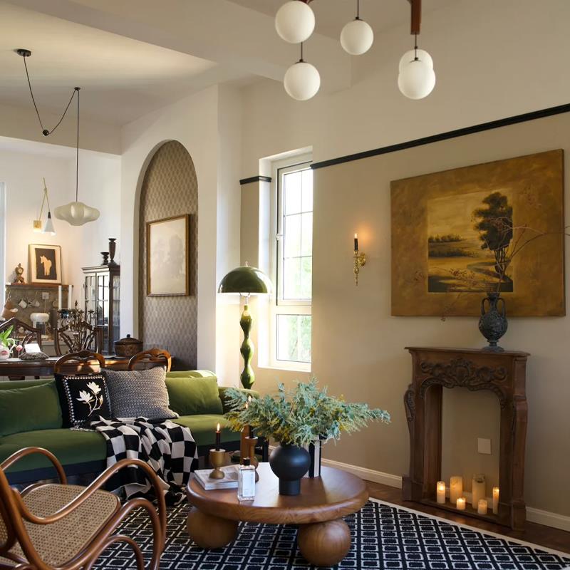 法式复古客厅高端沙发背后装饰画餐边柜中古风美式美拉德风景油画