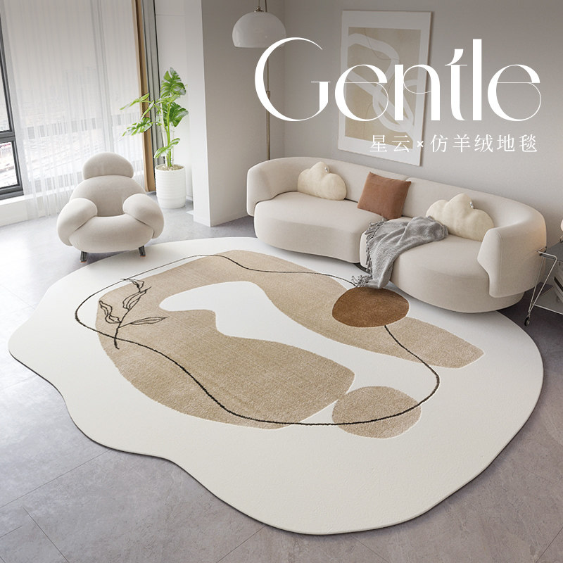 奶油风异形地毯客厅不规则卧室床边毯轻奢高级沙发家用满铺地垫