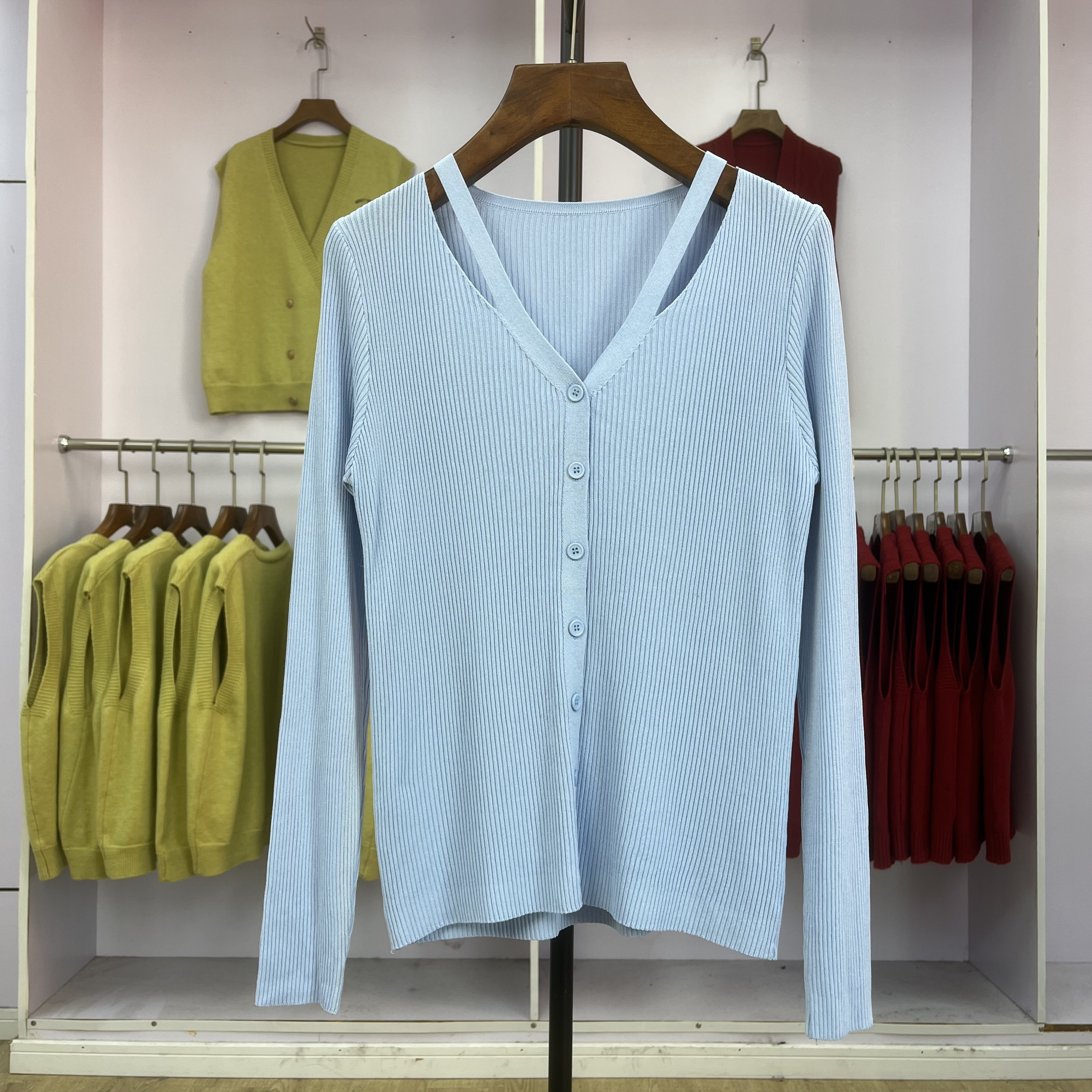 529 法式V领针织衫长袖开衫女早春新款设计感薄款冰丝上衣空调衫