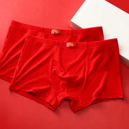 一条装本命年男士红内裤男平角裤四角莫代尔透气结婚红短裤属蛇年