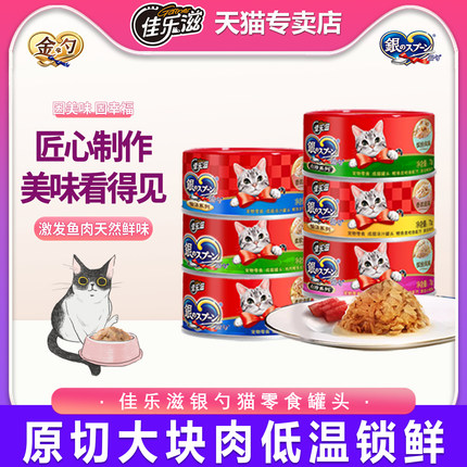 佳乐滋银勺猫罐头成猫零食金枪鱼鸡肉湿粮冻汤罐尝鲜6罐营养解馋