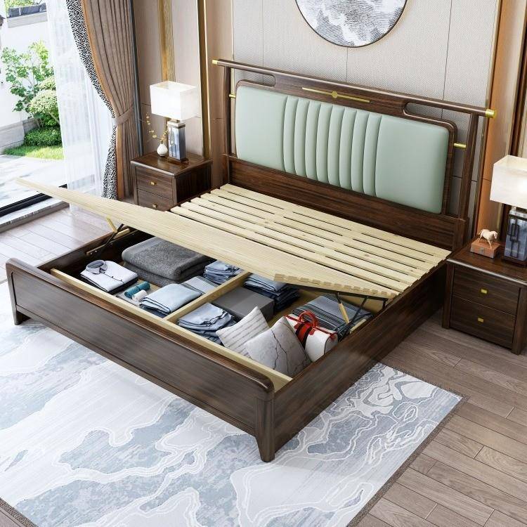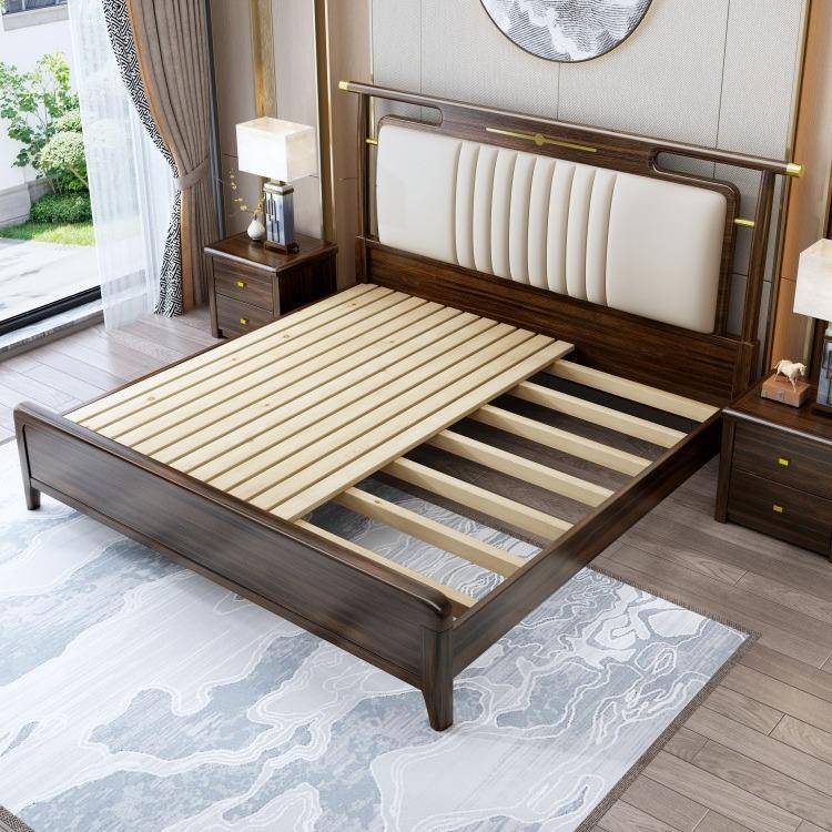 乌金木软包实木床新中式1.8米双人床1.5现代轻奢简约主卧大床婚床