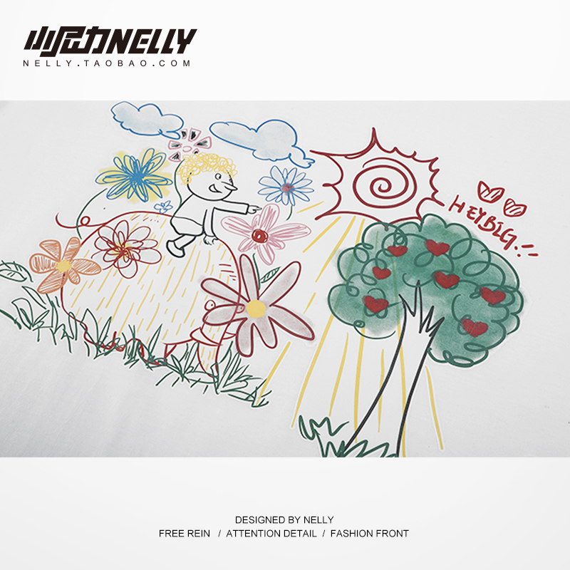 小尼力ins夏季新款涂鸦印花图案短袖t恤男女宽松休闲圆领棉体恤bf