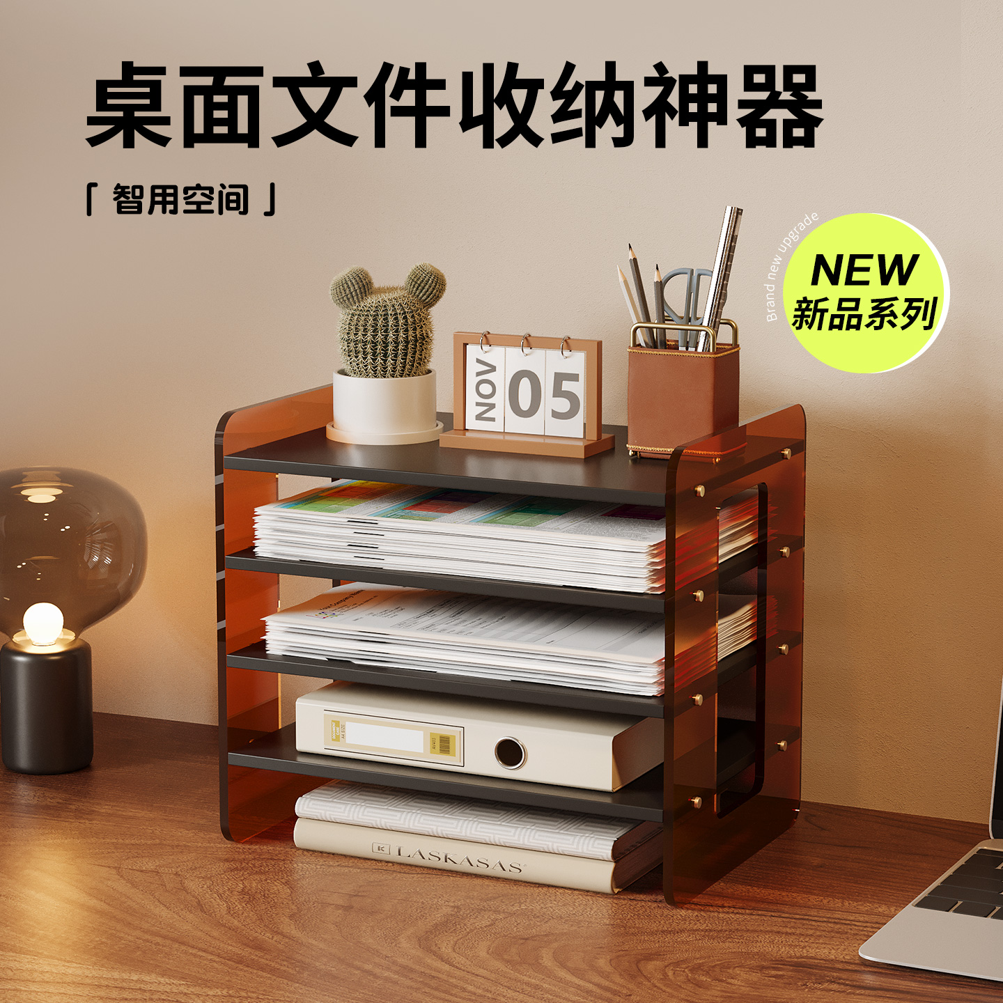 桌面书架文件收纳架办公桌文件框A4多层文件架工位书桌多层置物架