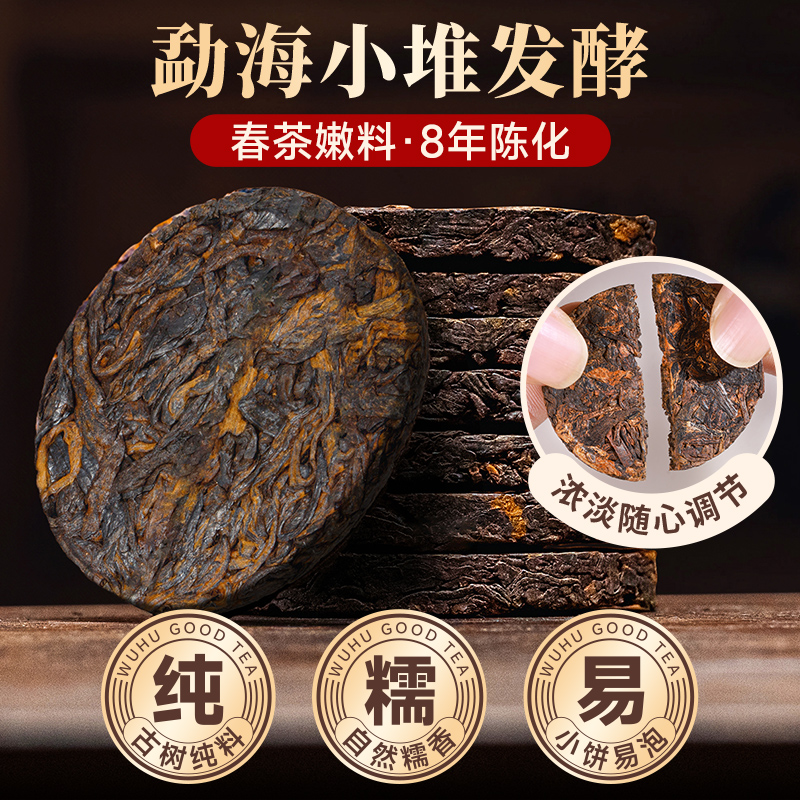 五虎长年普洱茶熟茶茶叶自己喝陈年熟普云南古树糯香茶饼罐装送礼