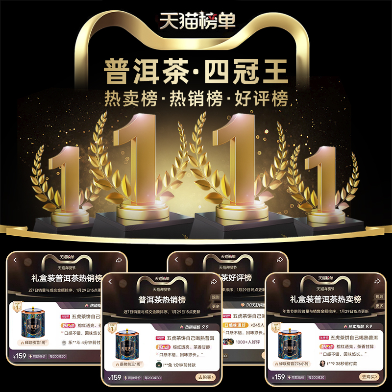 五虎长年普洱茶熟茶茶叶罐装