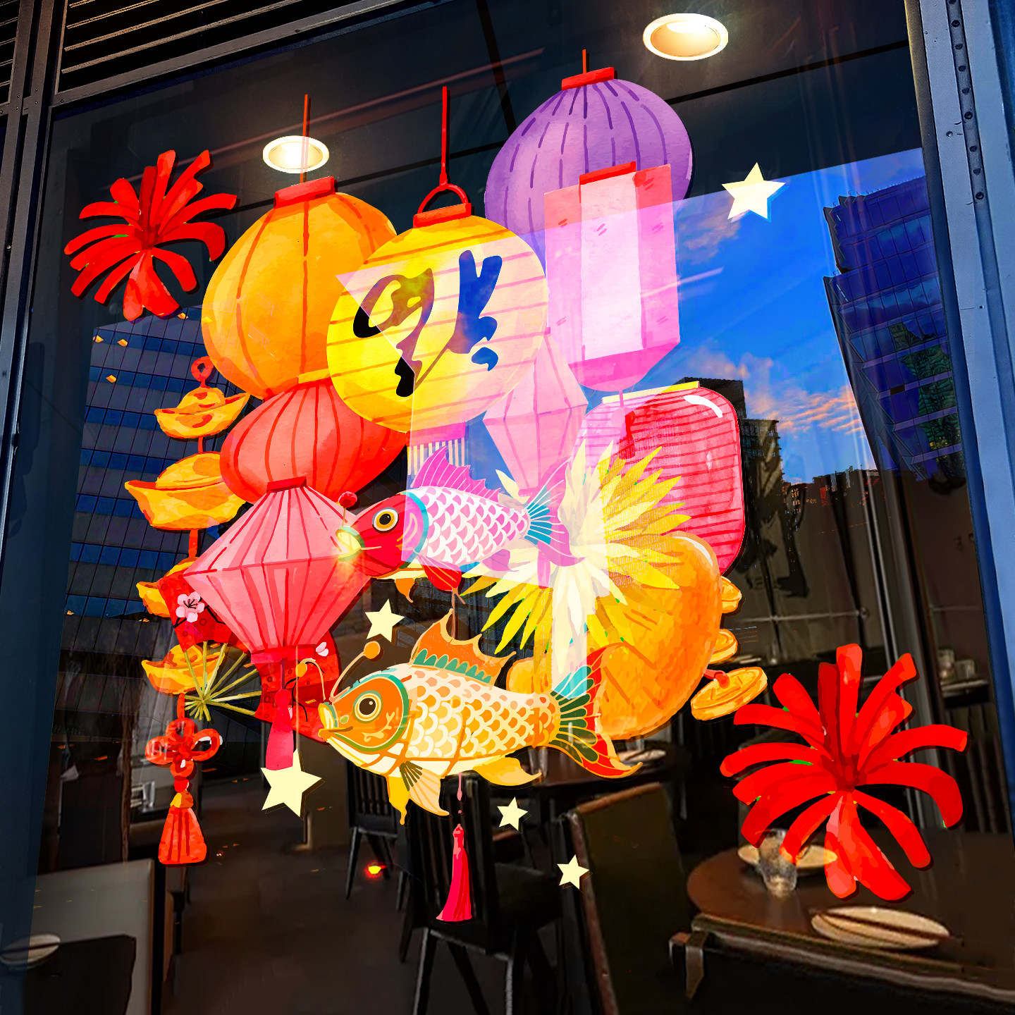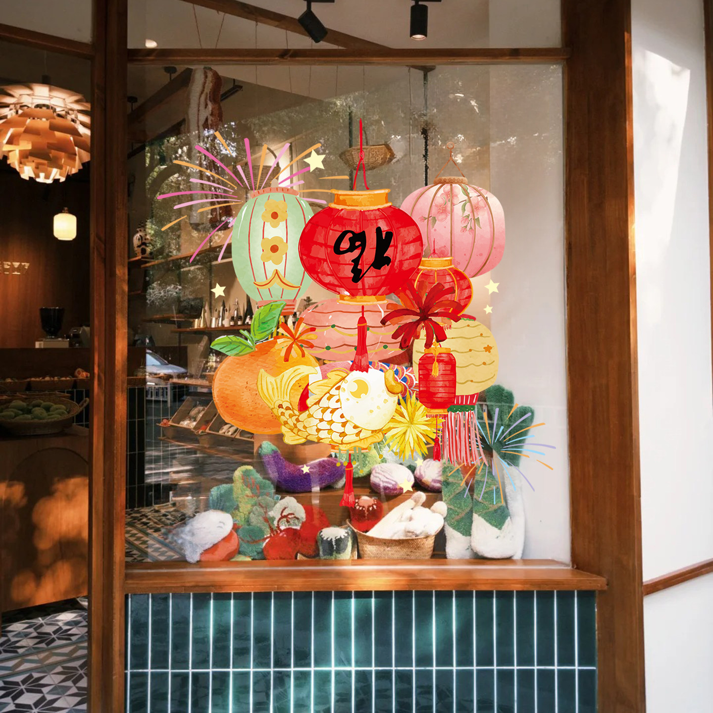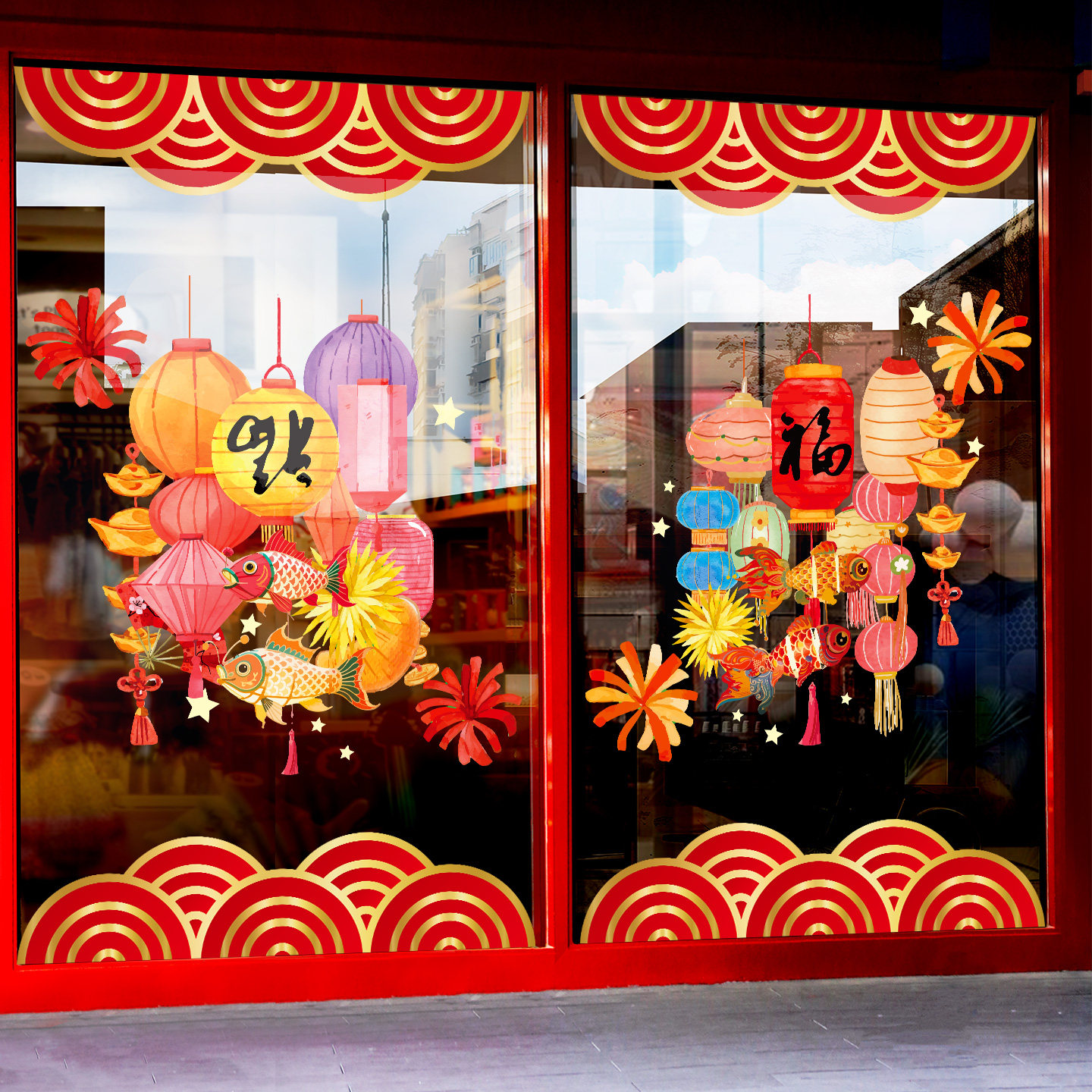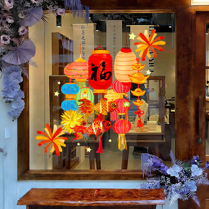 新年装饰窗花2026马年福字春节门贴过年灯笼贴画橱窗静电玻璃贴纸