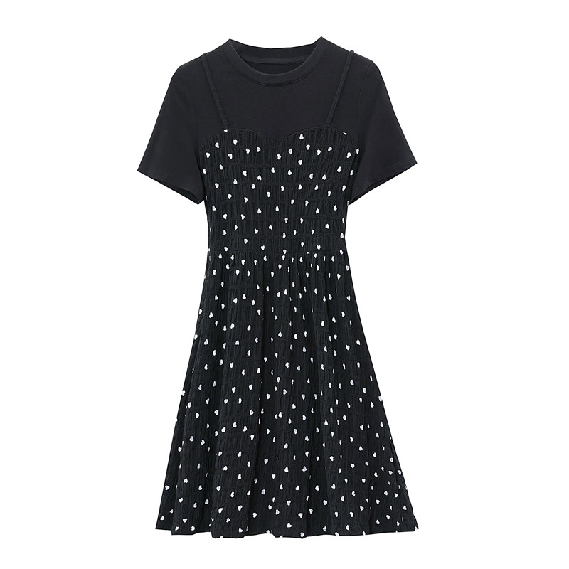 实拍针织印花浪漫爱心波点!假两件连衣裙女夏季休闲宽松裙子