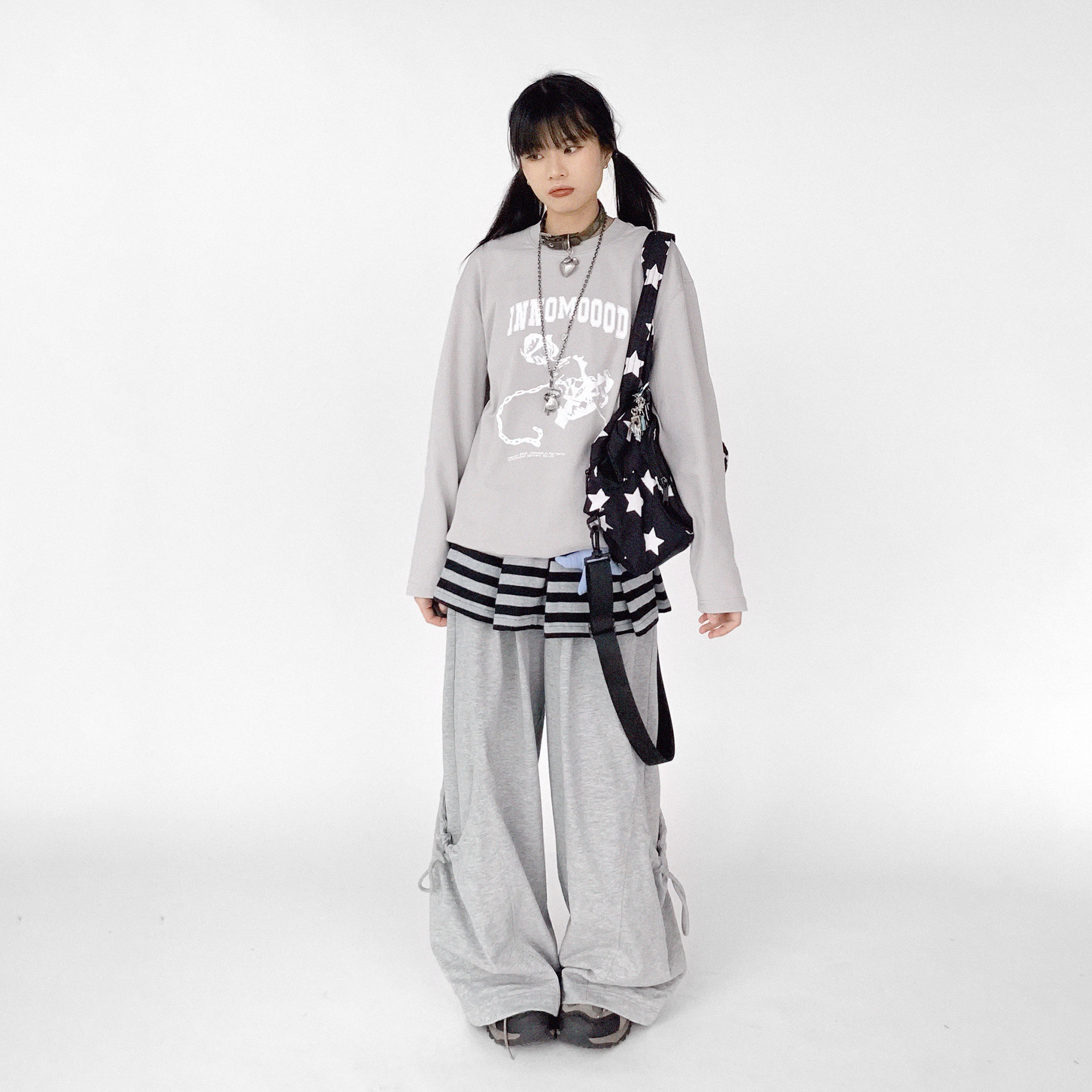 innomoood 超放松针织长裤弹力百搭廓形设计松紧腰运动裤休闲男女