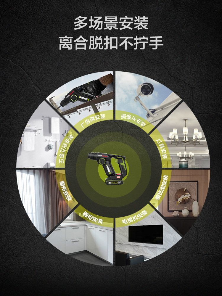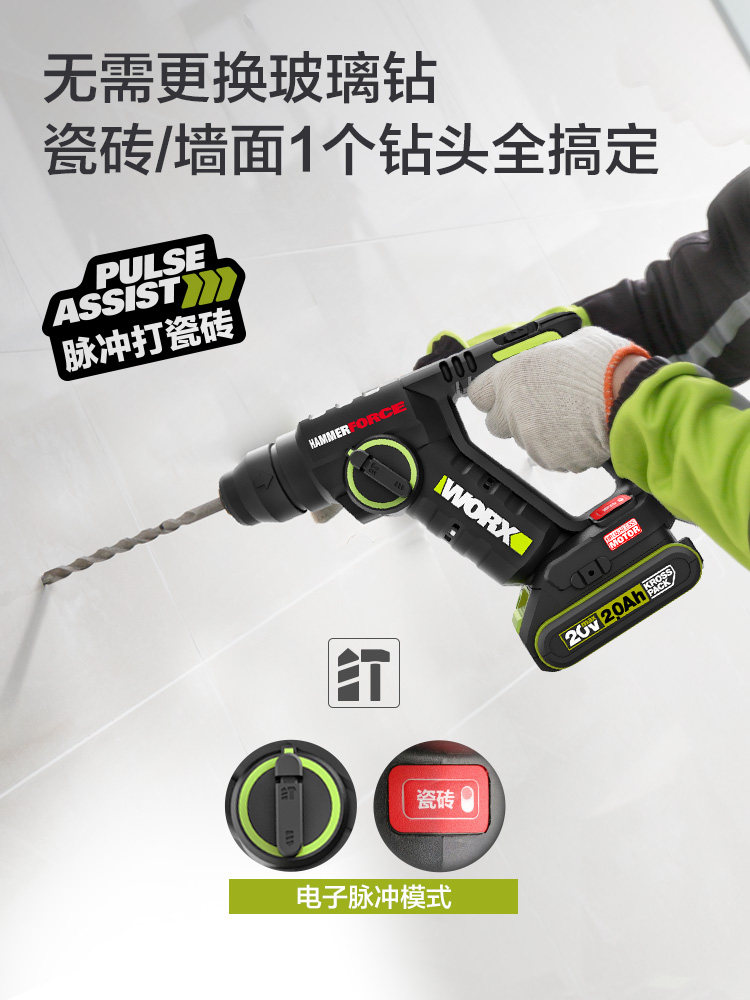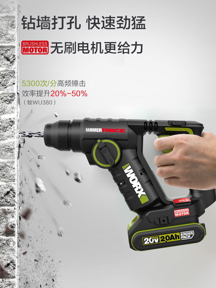 威克士充电电锤WU380S充电冲击钻工业级锂电池无刷多功能轻型电钻