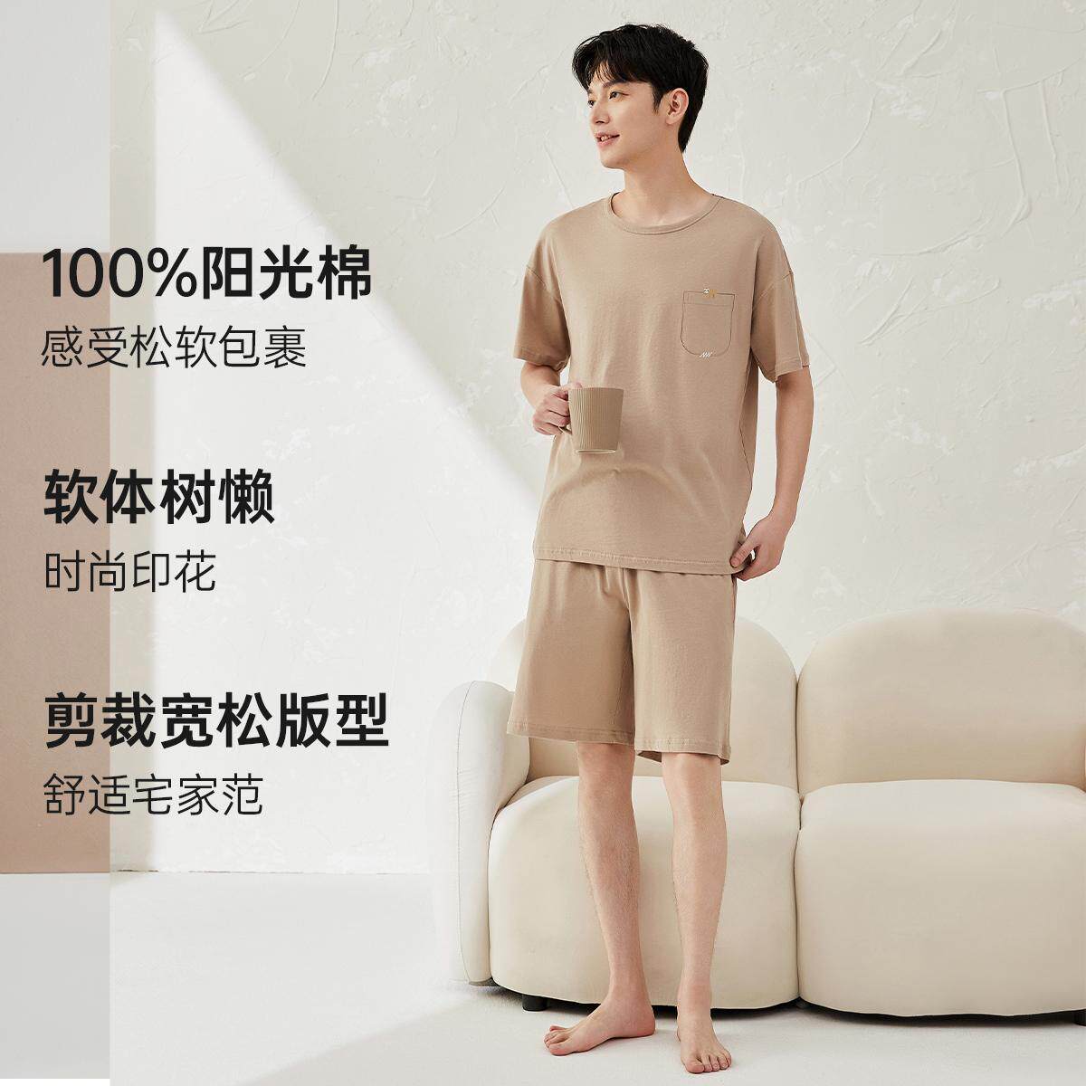 顶瓜瓜纯棉睡衣男士春夏季薄款短袖短裤家居服套装