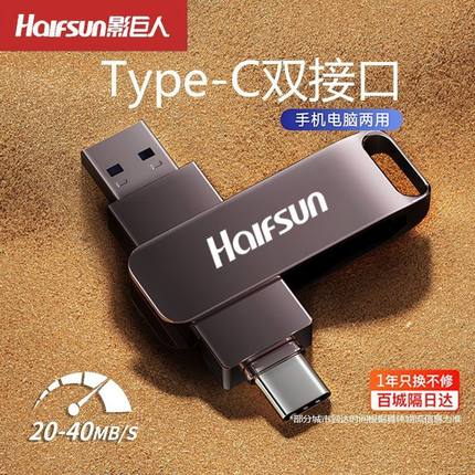 影巨人高速U盘256GB大容量typec双接口手机电脑两用办公车载优盘
