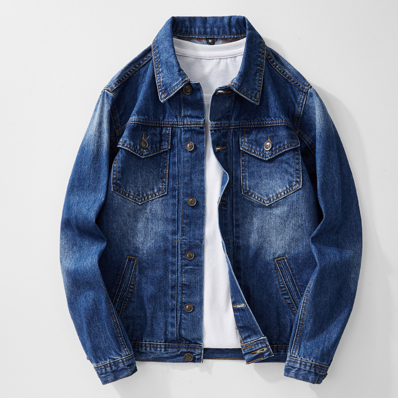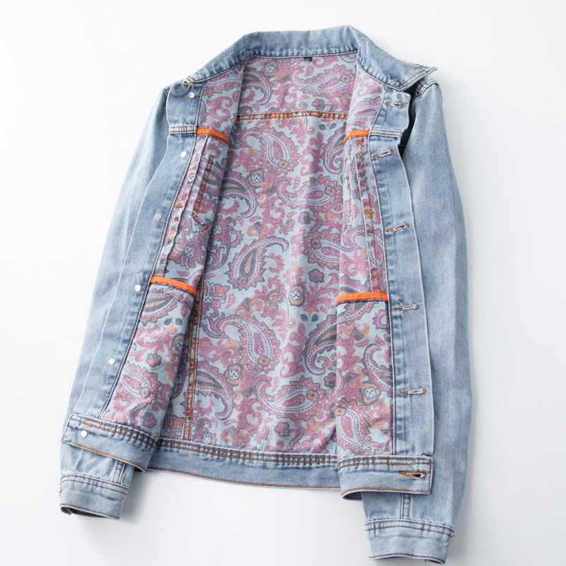 春季高街韩版2025水洗蓝 潮流百搭印花面料牛仔外套男士