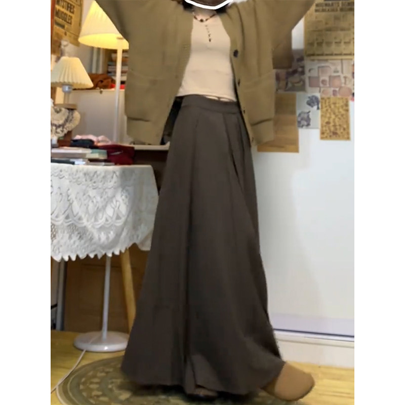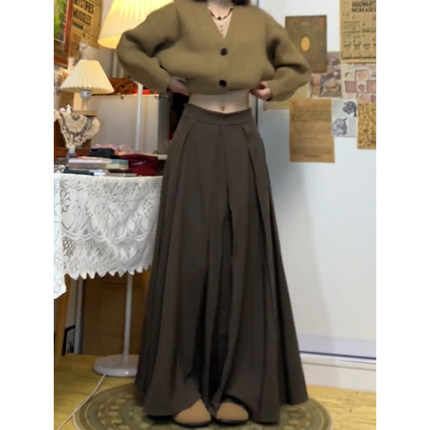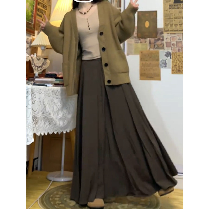 棕色半身裙春季大码女胖mm美拉德穿搭长裙梨形垂感显瘦百褶a字裙