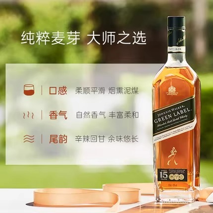 【官方旗舰店】尊尼获加绿牌绿方苏格兰威士忌750ml洋酒进口正品