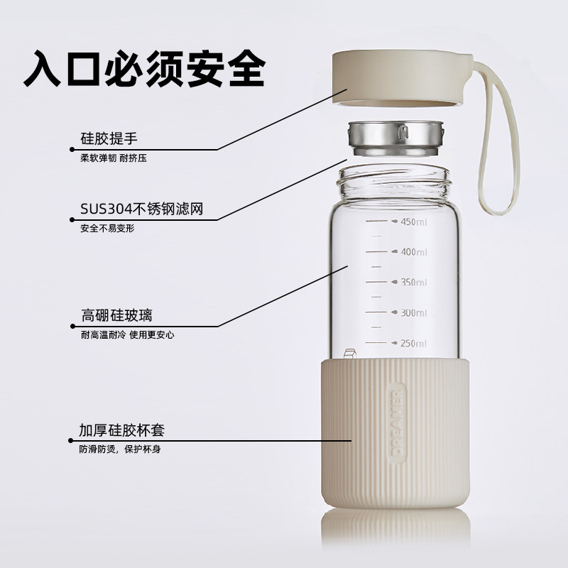 玻璃杯豆浆咖啡外出便携带盖女2025新款耐高温刻度高颜值茶水杯子
