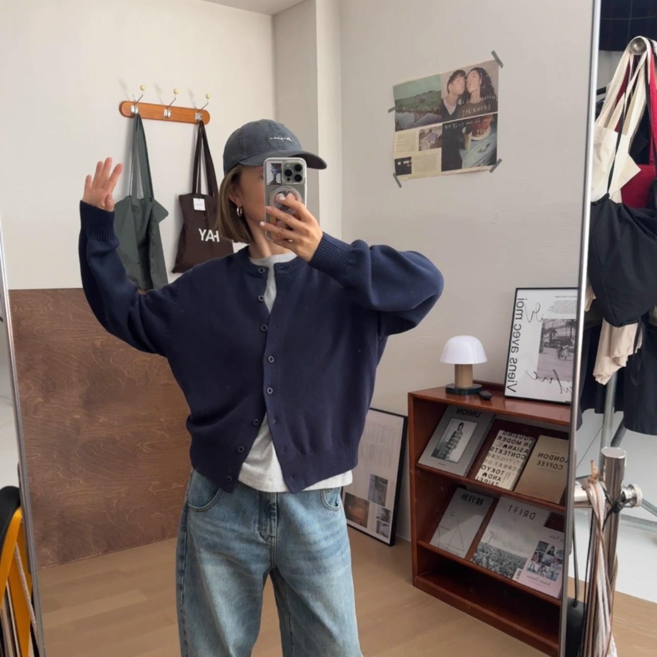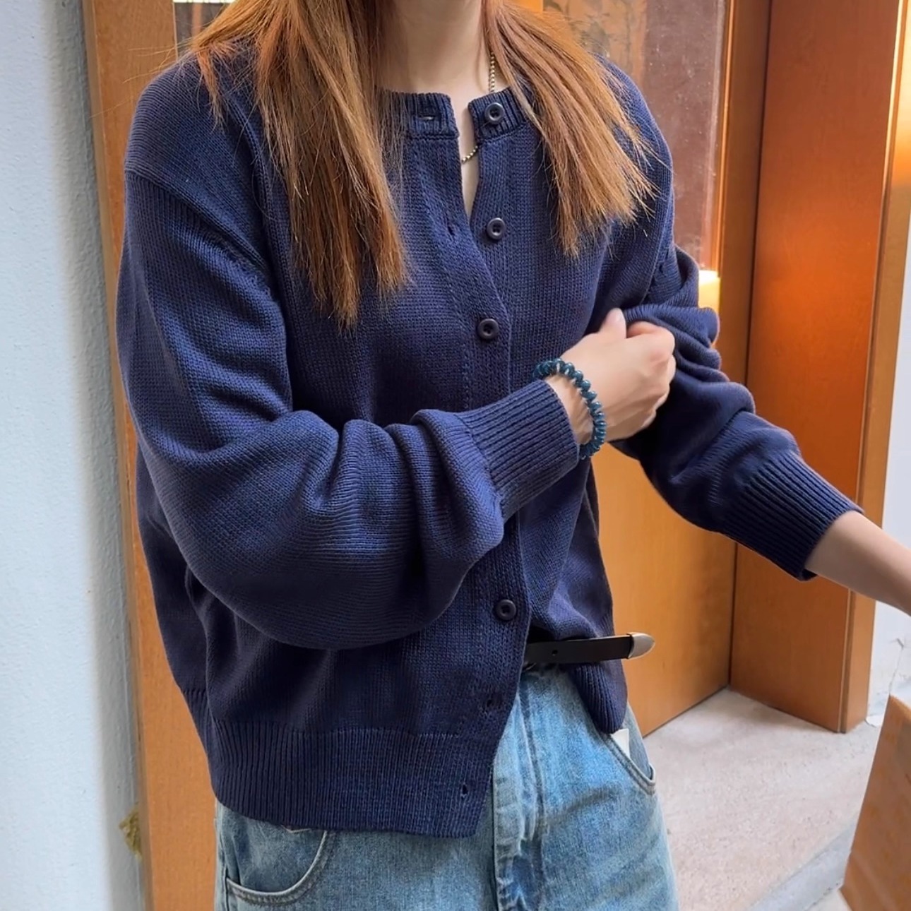 iamstudio 7740秋季新品高品质基础款 不起球亚麻针织开衫外套