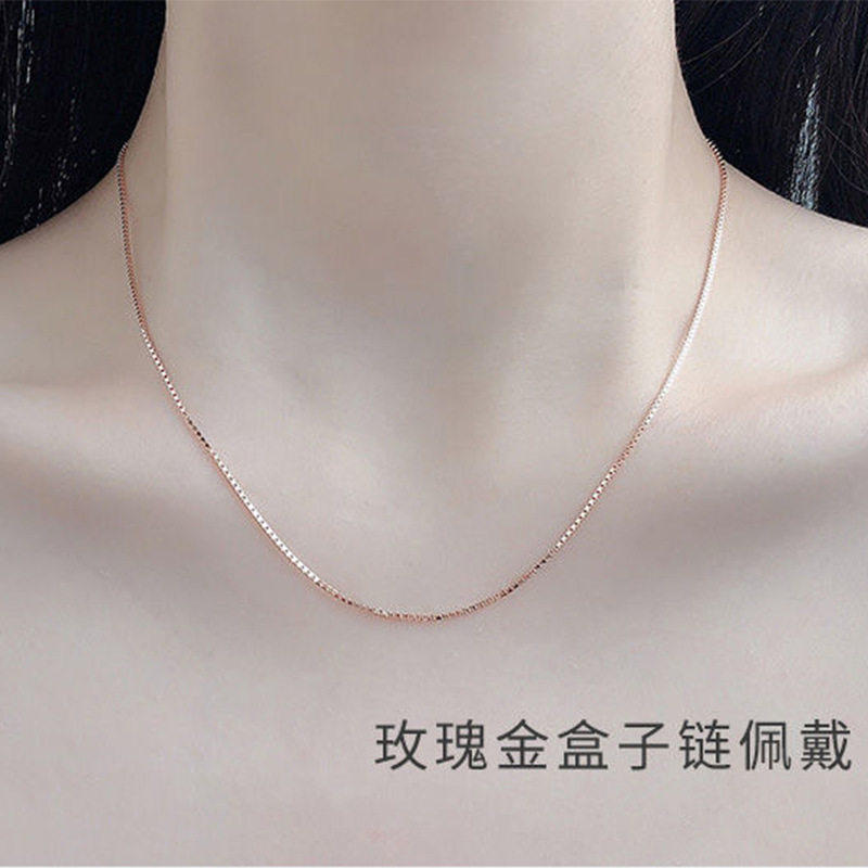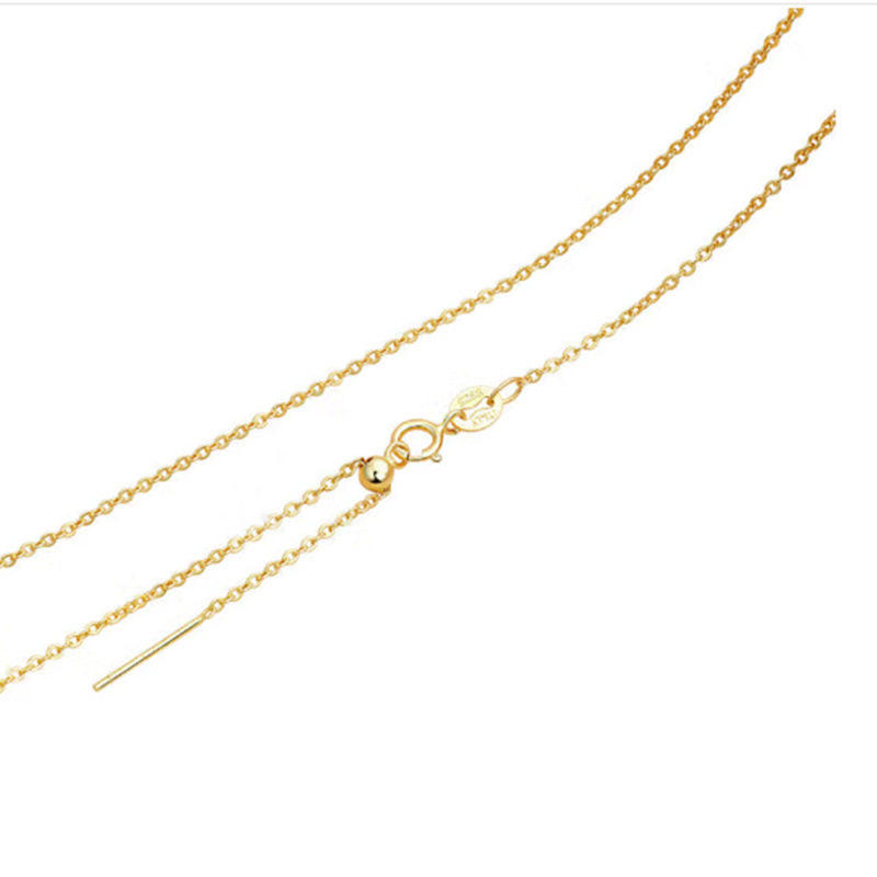 925纯银项链子无吊坠针式万能链镀18K金穿珍珠素链女细锁骨链挂绳