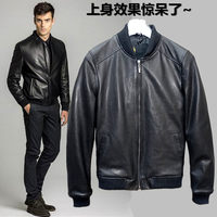 修身山羊皮头层皮革男短款真皮皮衣棒球服皮夹克