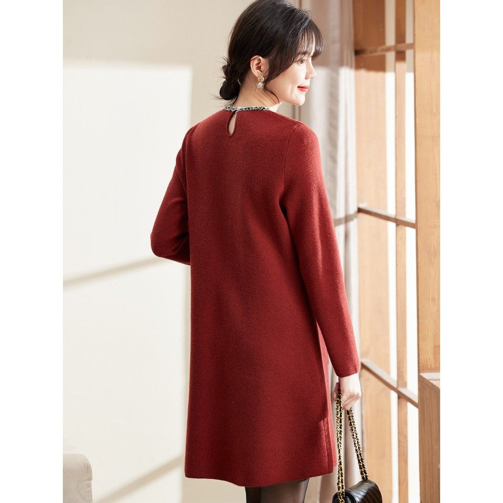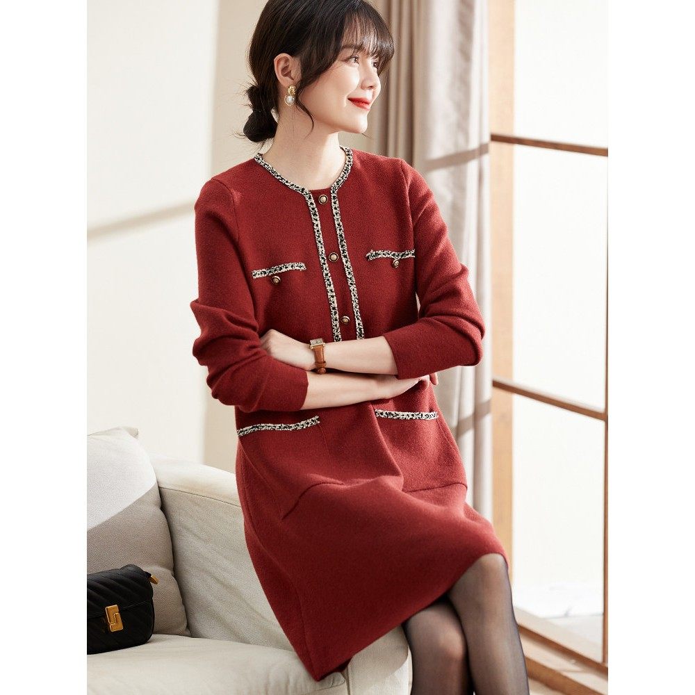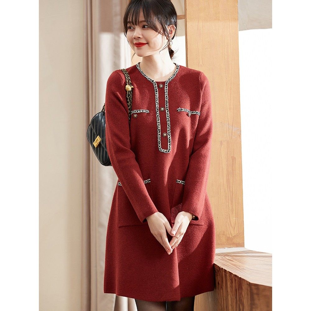 喜卉妈妈秋冬洋气婚宴小香风针织连衣裙中老年女装时尚喜庆打底裙