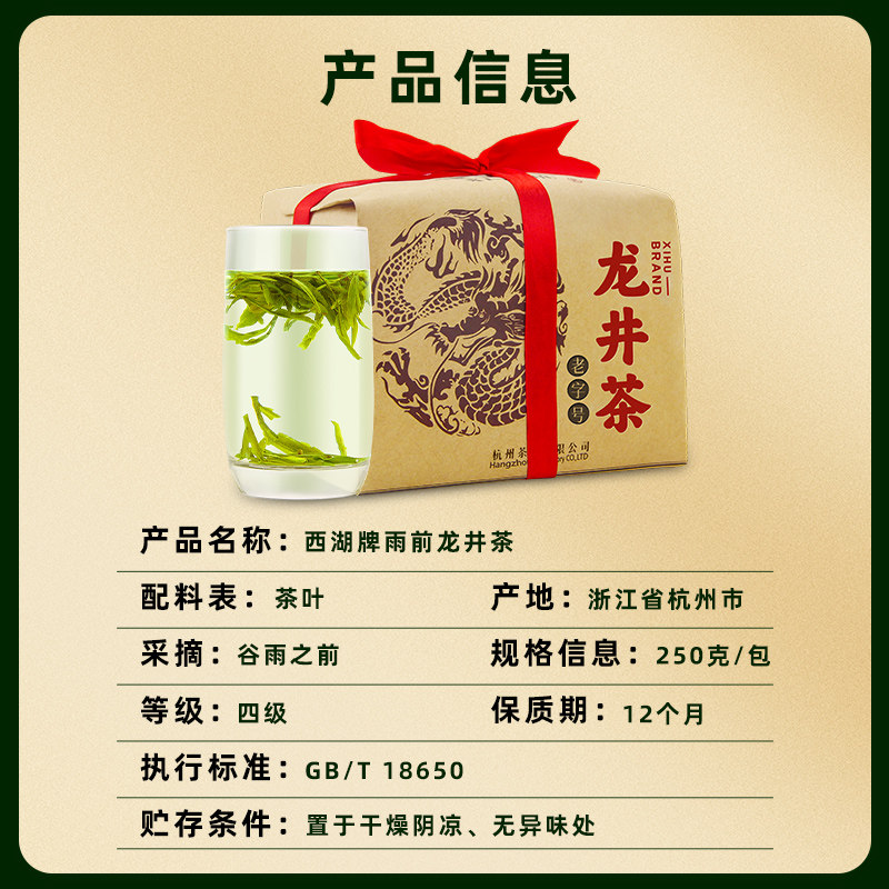 西湖牌雨前浓香龙井茶茶叶绿茶春茶正宗杭州茶厂