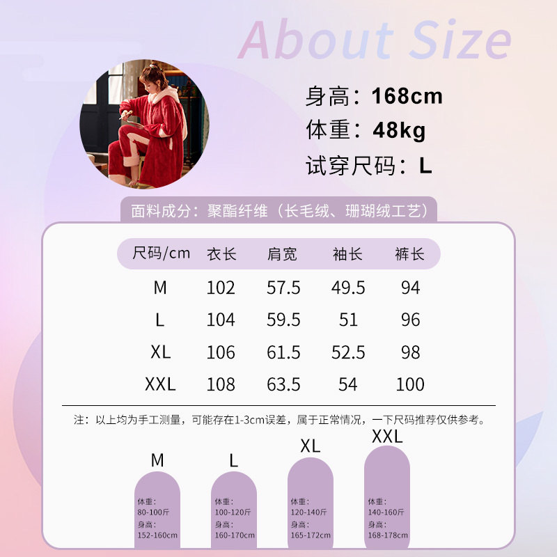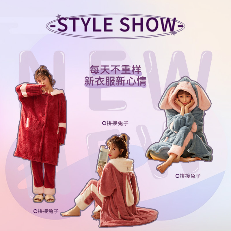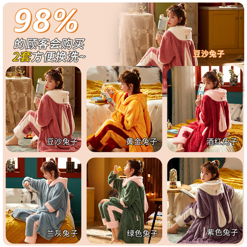 猫人珊瑚绒睡衣女秋冬季加绒加厚2024新款法兰绒睡袍长款可爱套装