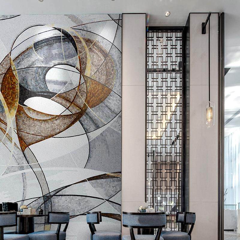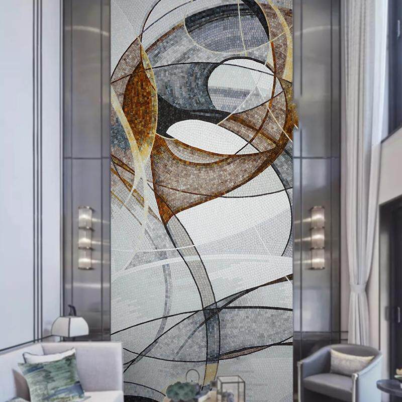 轻奢抽象画卫生间马赛克剪画背景墙过道玄关冰瓷玉拼图造型墙瓷砖