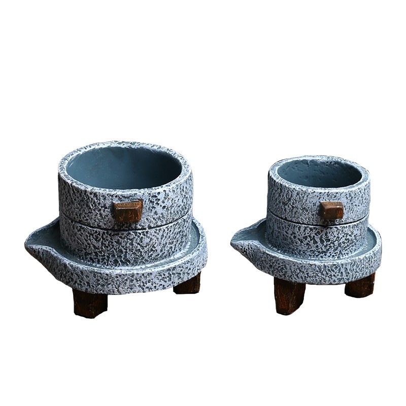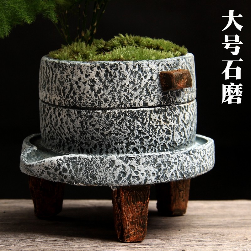 小石磨创意水泥花盆文竹绿植盆栽小花盆室内复古多肉植物花盆大号
