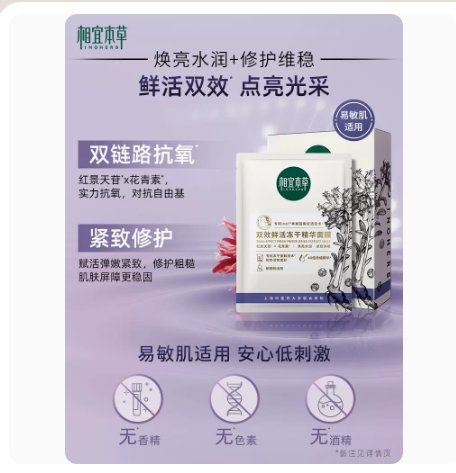 相宜本草红景天四倍凝白龙胆积雪草双效面膜贴补水保湿女官方正品