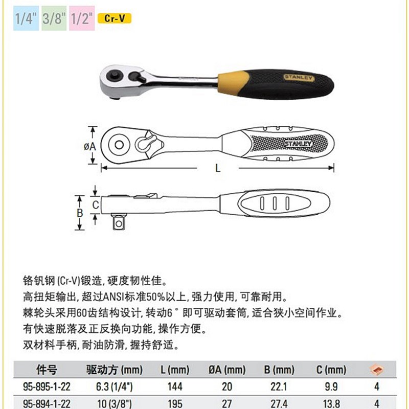 STANLEY/史丹利强力型双色柄棘轮扳手95-895/894/893-1-22