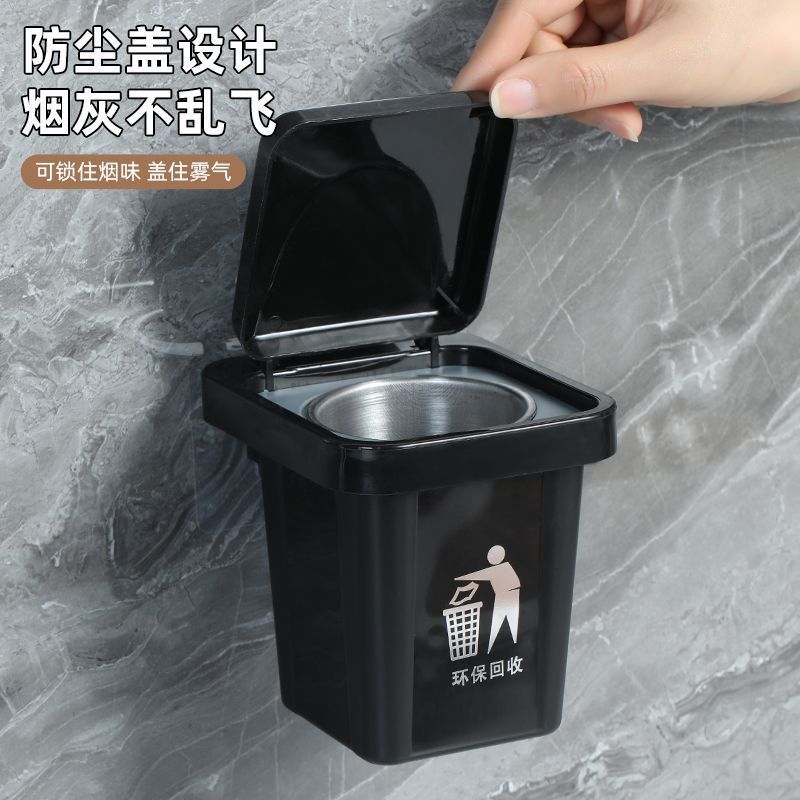 创意礼品卫生间烟灰缸通用家用卫生间壁挂式烟灰缸带盖防飞灰