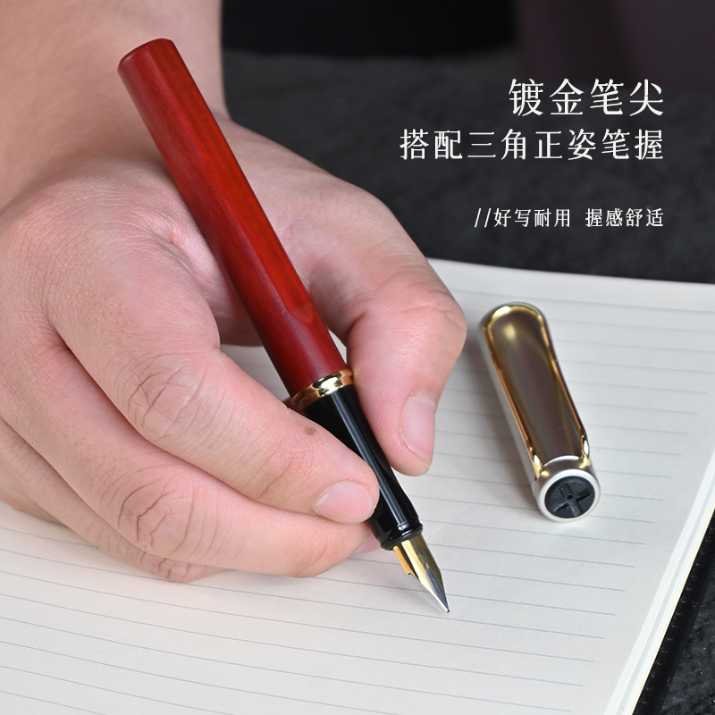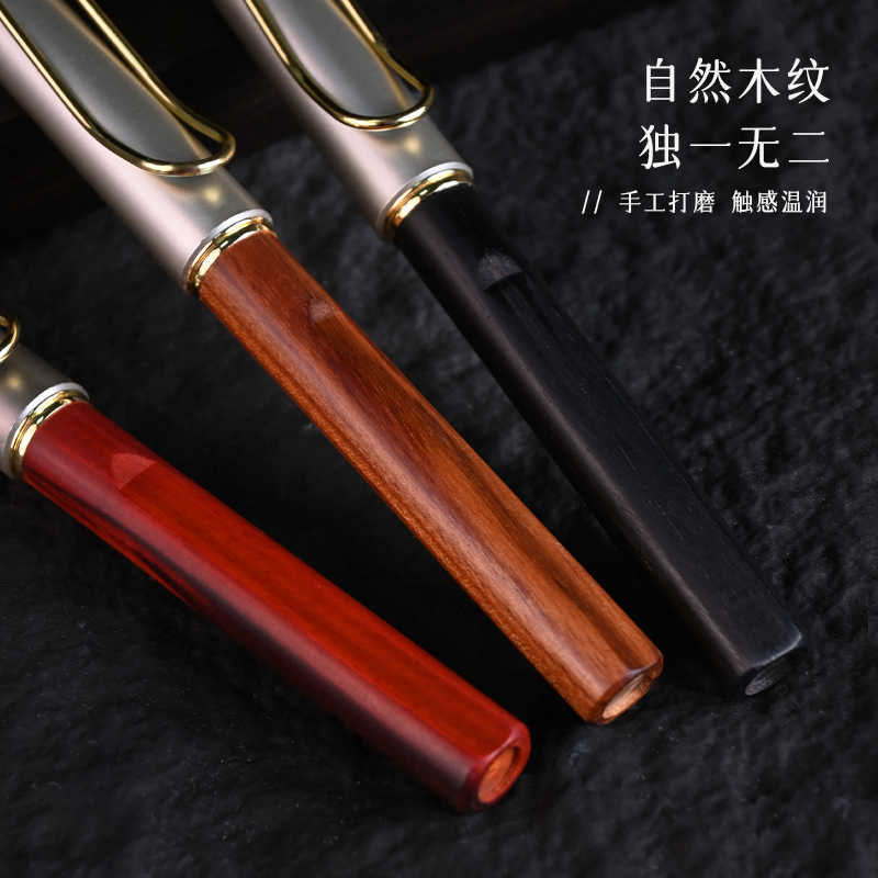 品界822#原木笔杆手工打磨钢笔明尖成人练字书法笔学生用特细镀金笔尖商务办公男女复古女士男士礼品钢笔0.38