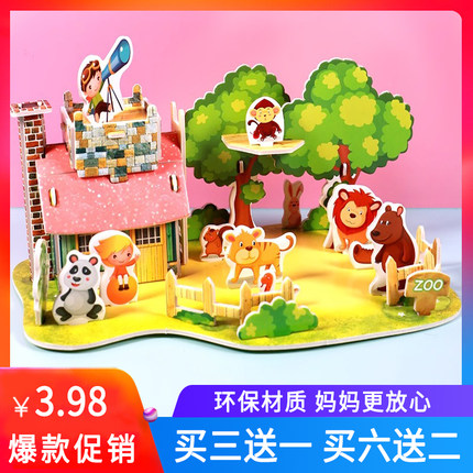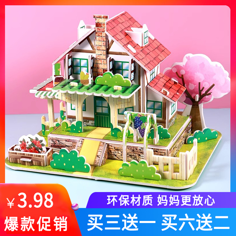 3d立体拼图儿童益智动脑男女孩diy手工纸质模型房子拼插拼图玩具