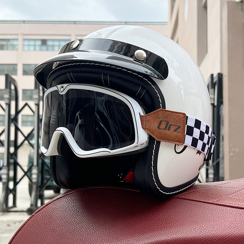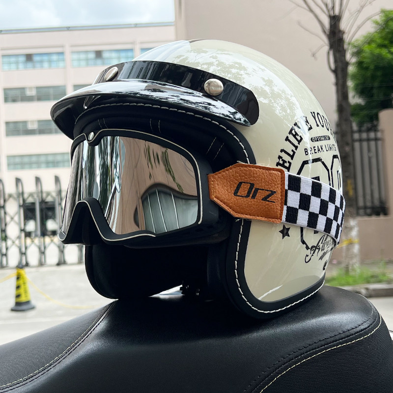 3C认证ORZ复古哈雷摩托车头盔男女3/4半盔电动踏板机车四季小牛