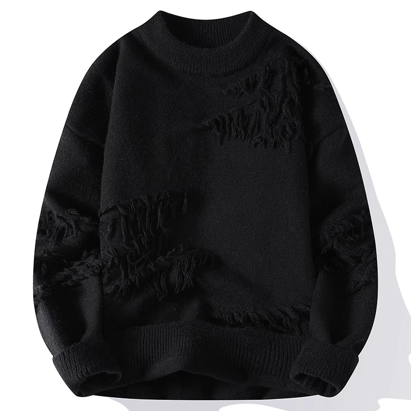 冬季毛衣男潮流纯色百搭圆领长袖加绒加厚打底日系慵懒破洞针织衫