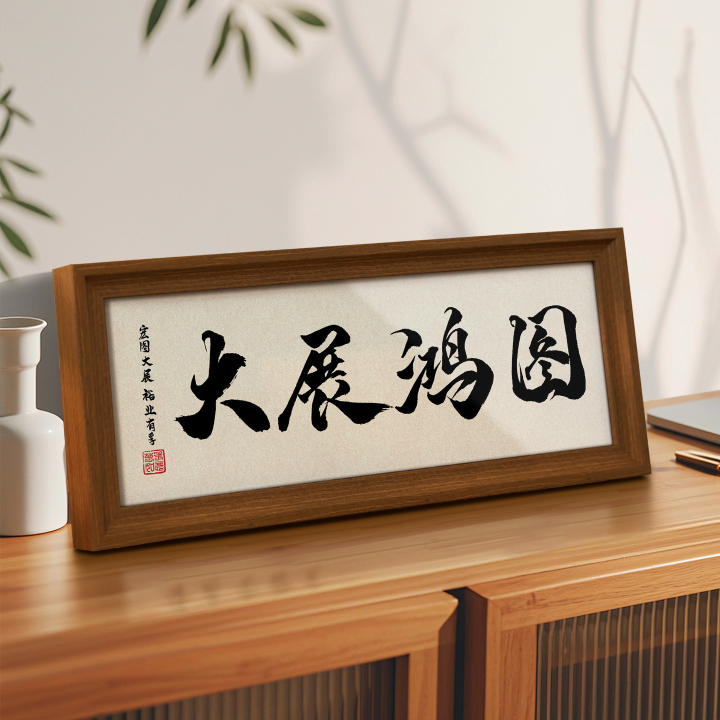大展鸿图书法相框字画办公室桌面摆件情绪稳定神器书房卧室装饰画