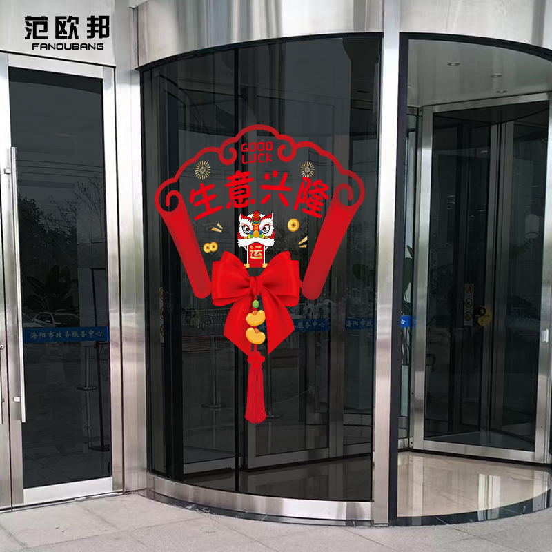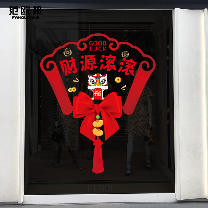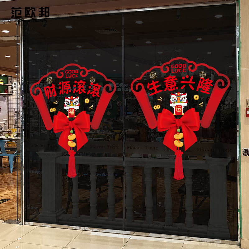 新年中式折扇静电贴画2025春节服装店橱窗蝴蝶结装饰玻璃门贴纸