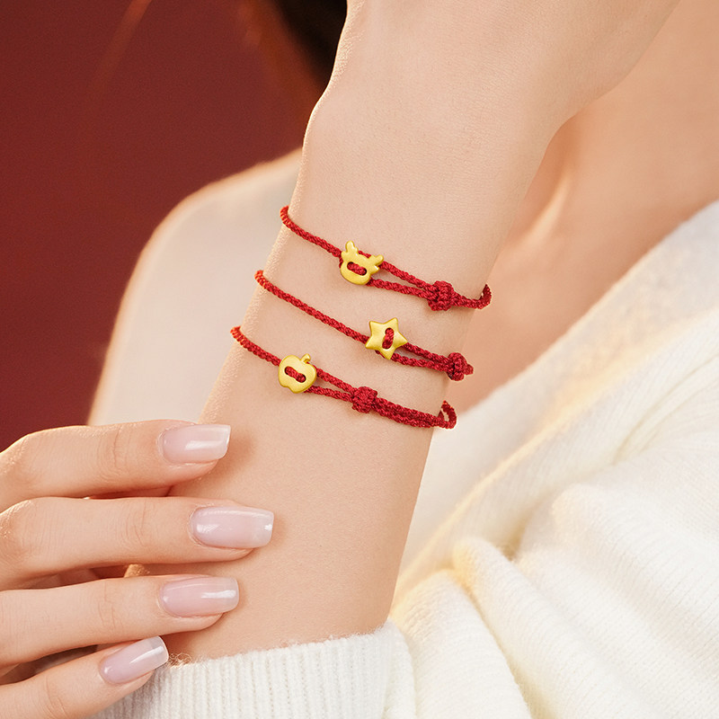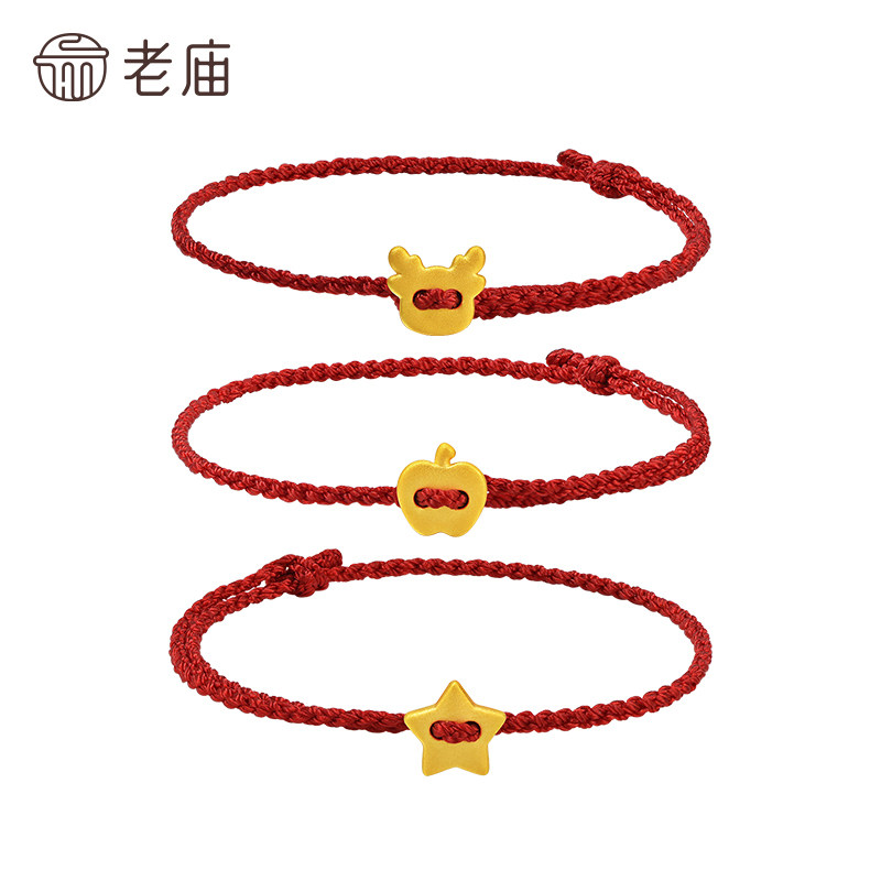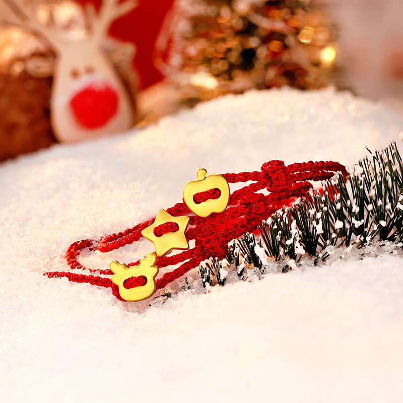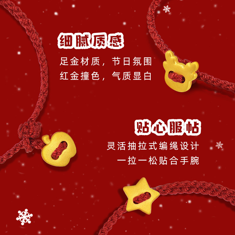 老庙黄金足金一鹿平安星星苹果黄金手绳圣诞礼物时尚百搭送礼节日